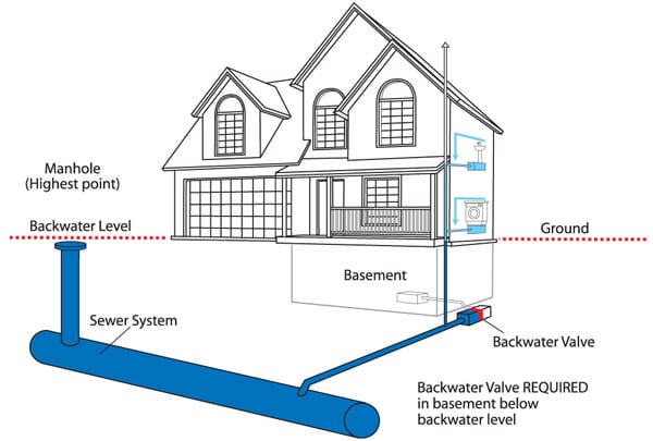 A plumber should be contacted to install a backwater valve to ensure that it’s located properly and installed correctly. If you have one in your home, tell your insurance company. Some insurers offer discounts for devices that are intended to prevent damage to the home. If you aren't sure if there is a backwater valve in your home, look for a green rectangular panel on the basement floor or ask your plumber.
